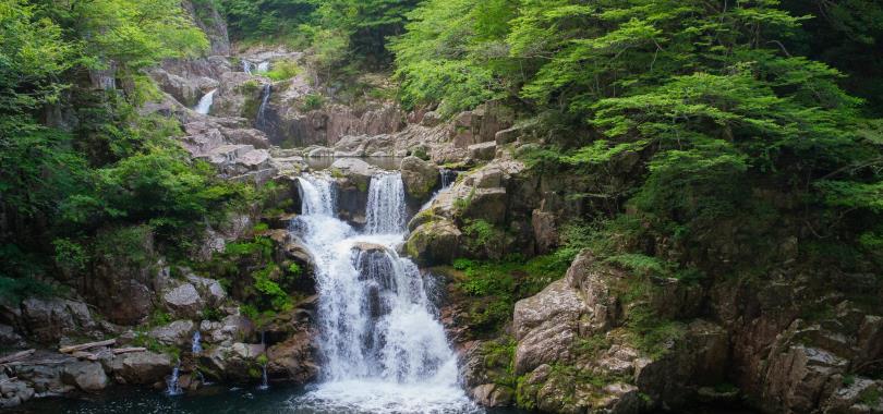 廣島縣的三段峽是日本西部著名的天然峽谷,它被指定為國家特別名勝,全長約16公里,有著清澈的溪流、翠綠的峽谷和瀑布,還有被譽為「三段峽五大天然景觀」的黑淵、猿飛、二段瀑布、三段瀑布和三層瀑布。