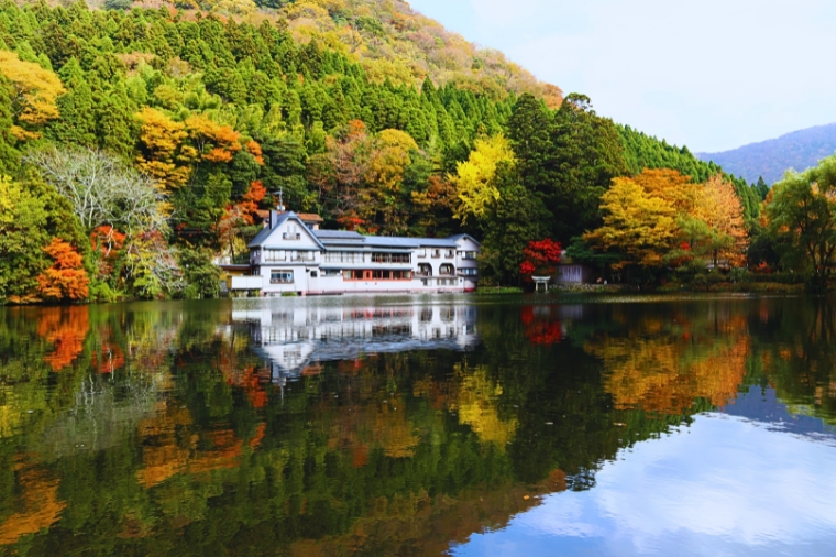 【金鱗湖】由溫泉匯流而成的金鱗湖,即使是嚴冬季節,湖水也熱氣騰騰,是盆地中晨霧的來源。這一帶充滿情趣的風景,深深地迷戀了與謝野晶子和北原白秋等著名人士,是湯布院最著名的湖泊。