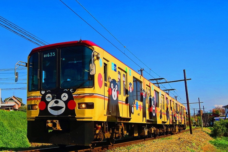 【萌熊電車Kumamon】以『萌熊』為主題的彩繪列車,2016年6月全新彩繪,行程特別安排從<上熊本車站>到<北熊本車站>搭乘可愛的『萌熊彩繪電車』,親身感受熊本的超人氣卡哇伊明星『萌熊』的超迷人魅力。在北熊本車站內備有熊本電鐵限定商品及萌熊商品,可在此歡樂選購。
