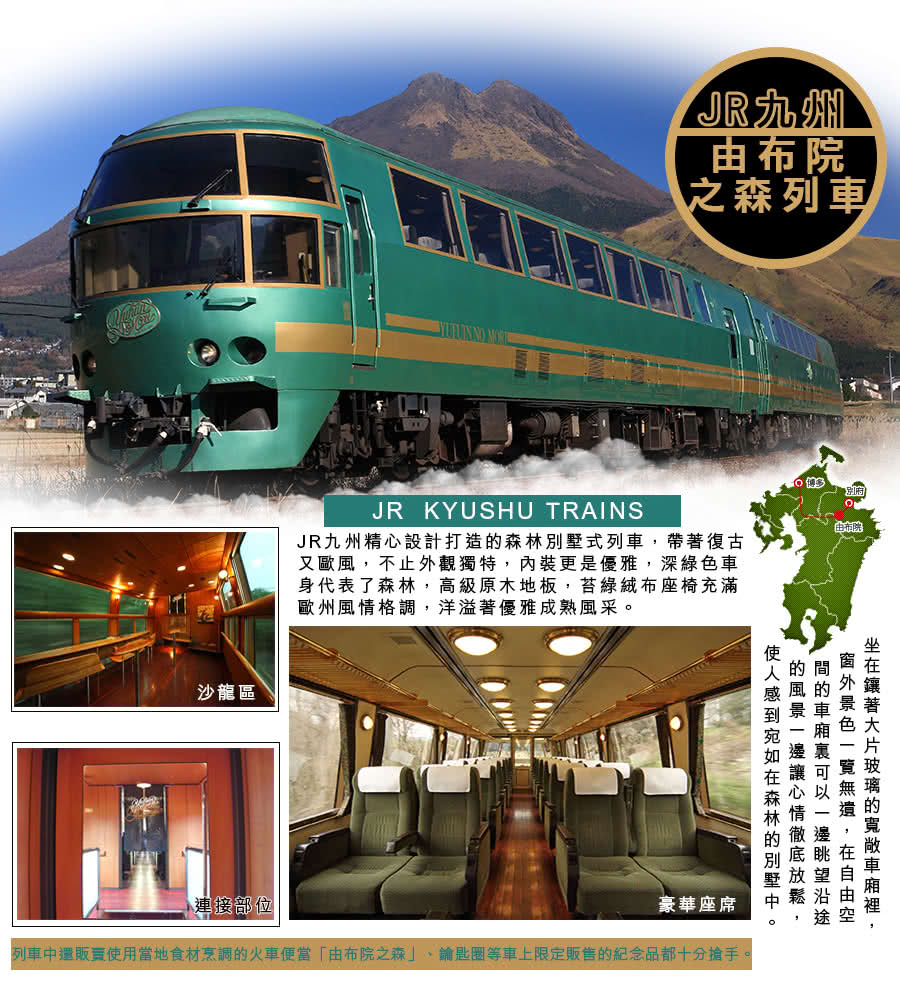 特別說明1:如遇由布院之森列車因氣候因素、例行維修停駛,列車將由JR九州特急列車做為替代!