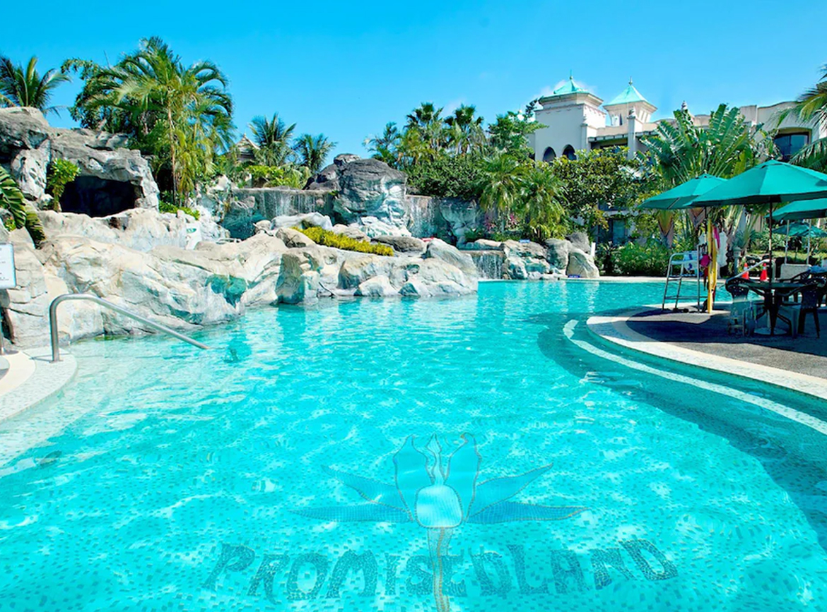 理想大地飯店共有大島、中島、小島區,每個島都有游泳池,記得自備泳衣泳帽